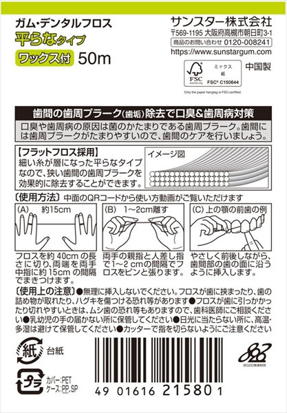 ガム・デンタルフロス ワックス50M フラットタイプ 【 サンスター 】 【 フロス・歯間ブラシ 】